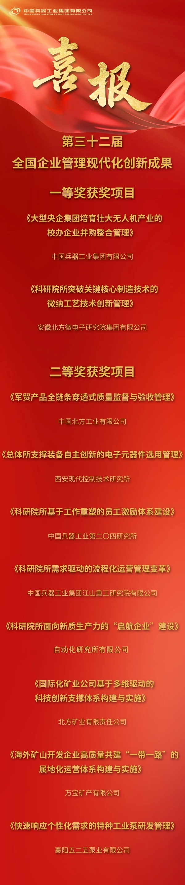 第三十二屆全國企業(yè)管理現(xiàn)代化創(chuàng)新成果發(fā)布,兵器工業(yè)集團2+8 |